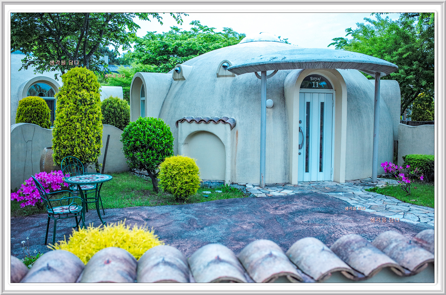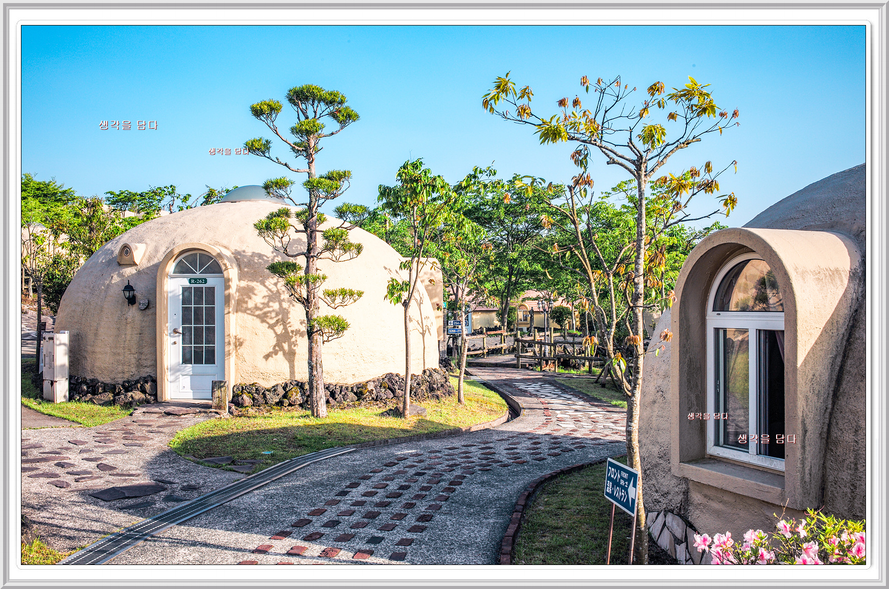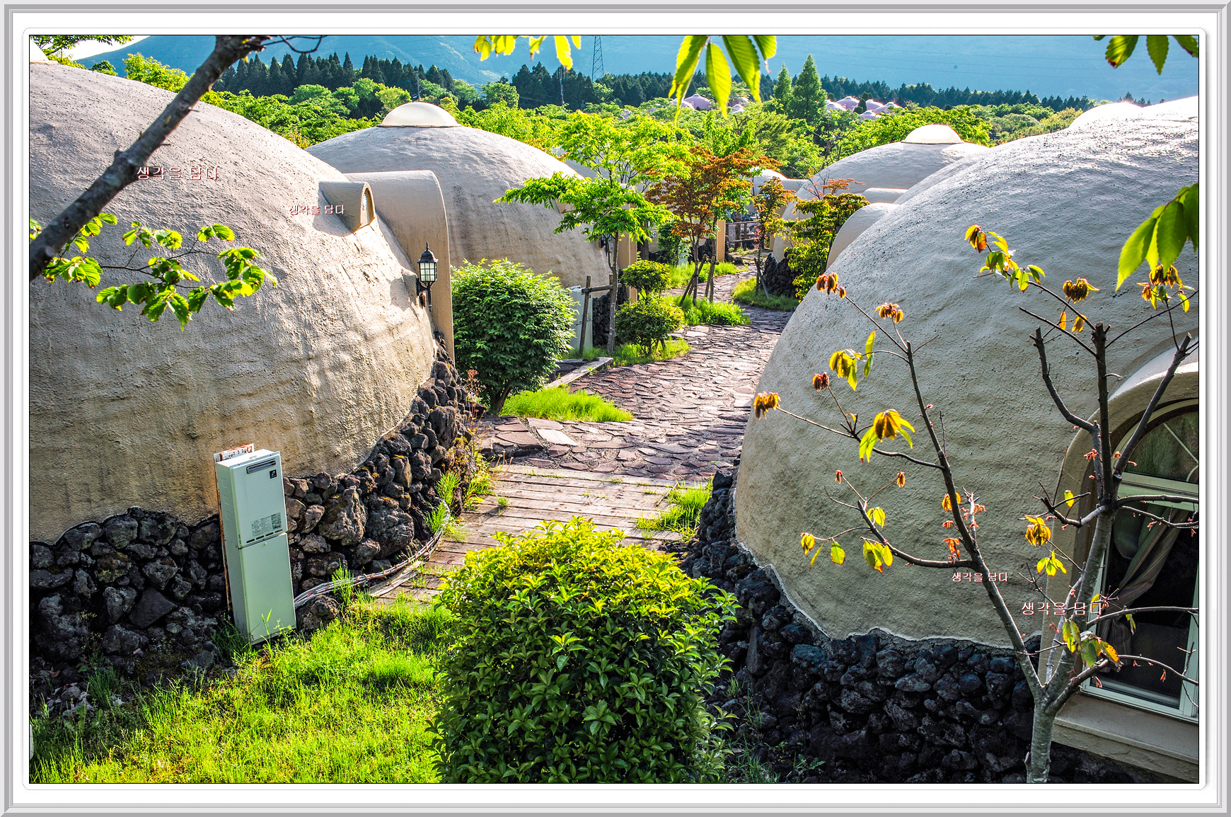 특이한 모양의 돔형 숙소인 아소팜 빌리지는