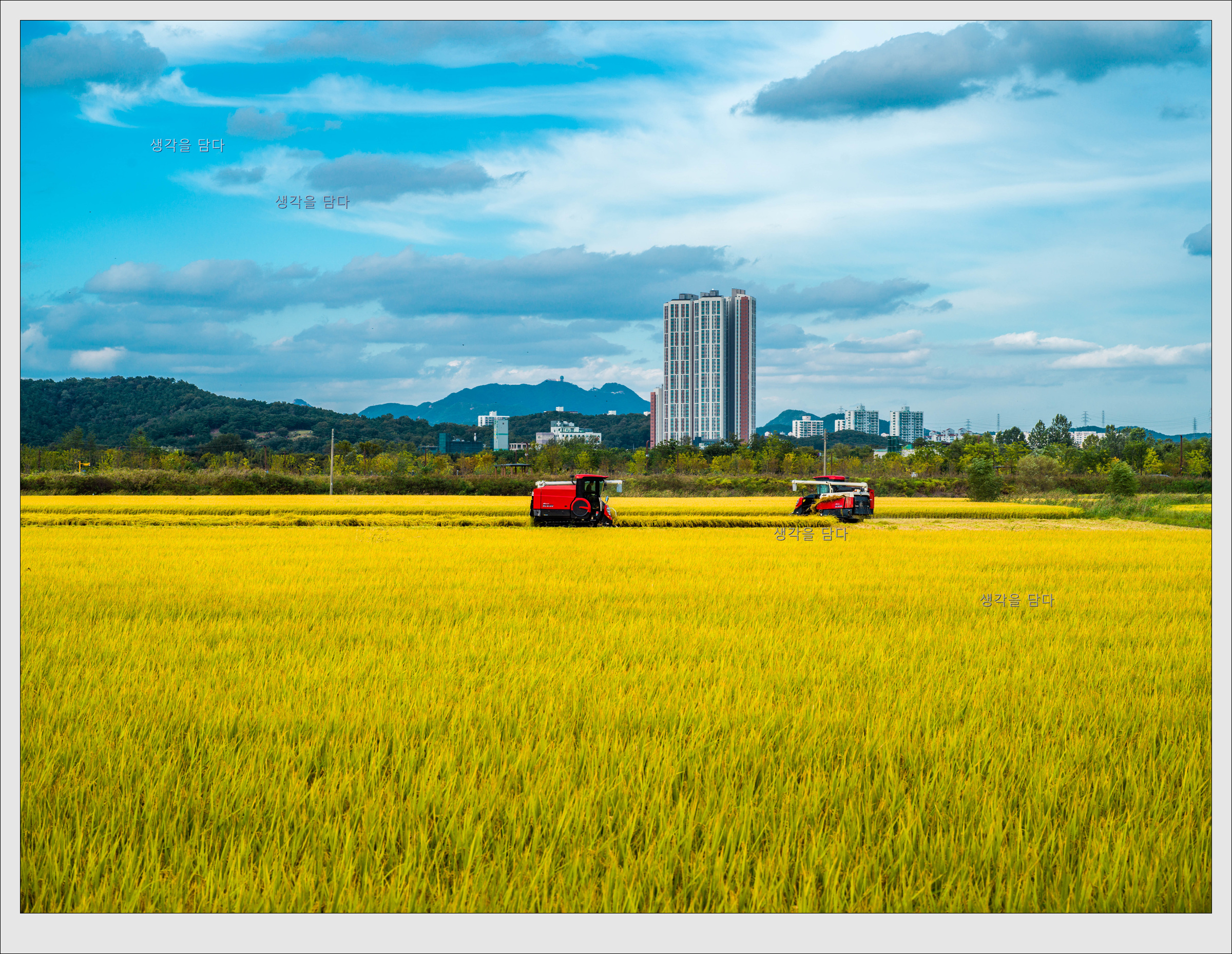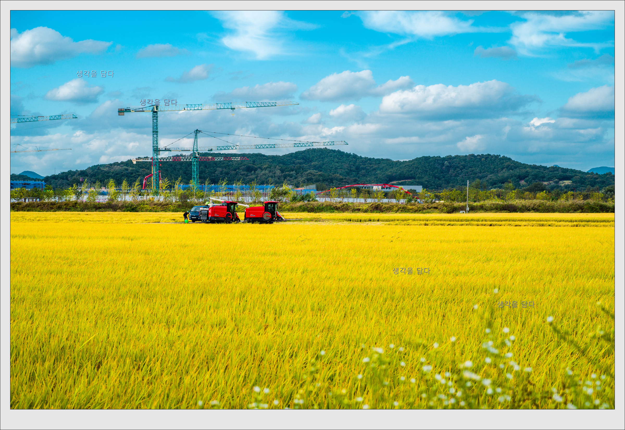 그런데 지금은 소리 소문 없이 '콤바인'이라는 수확기가 쓱쓱 지나가며
