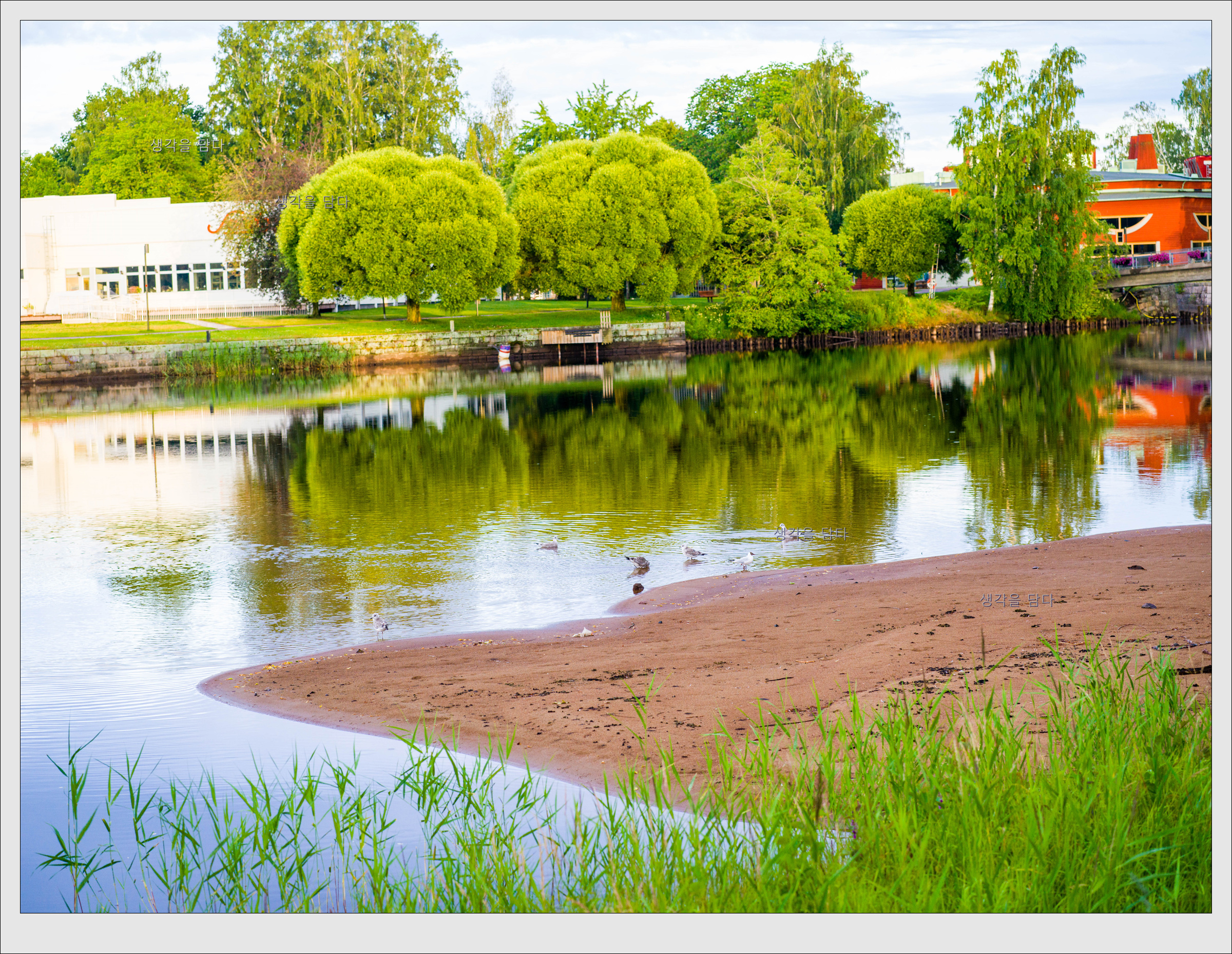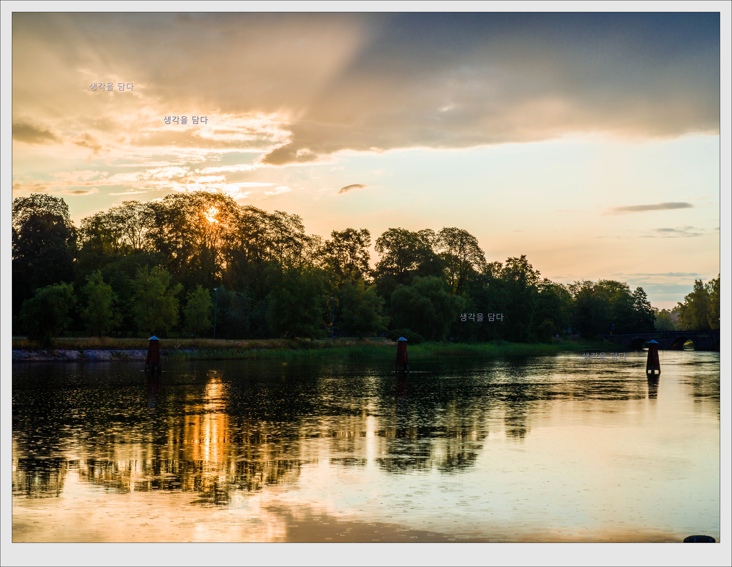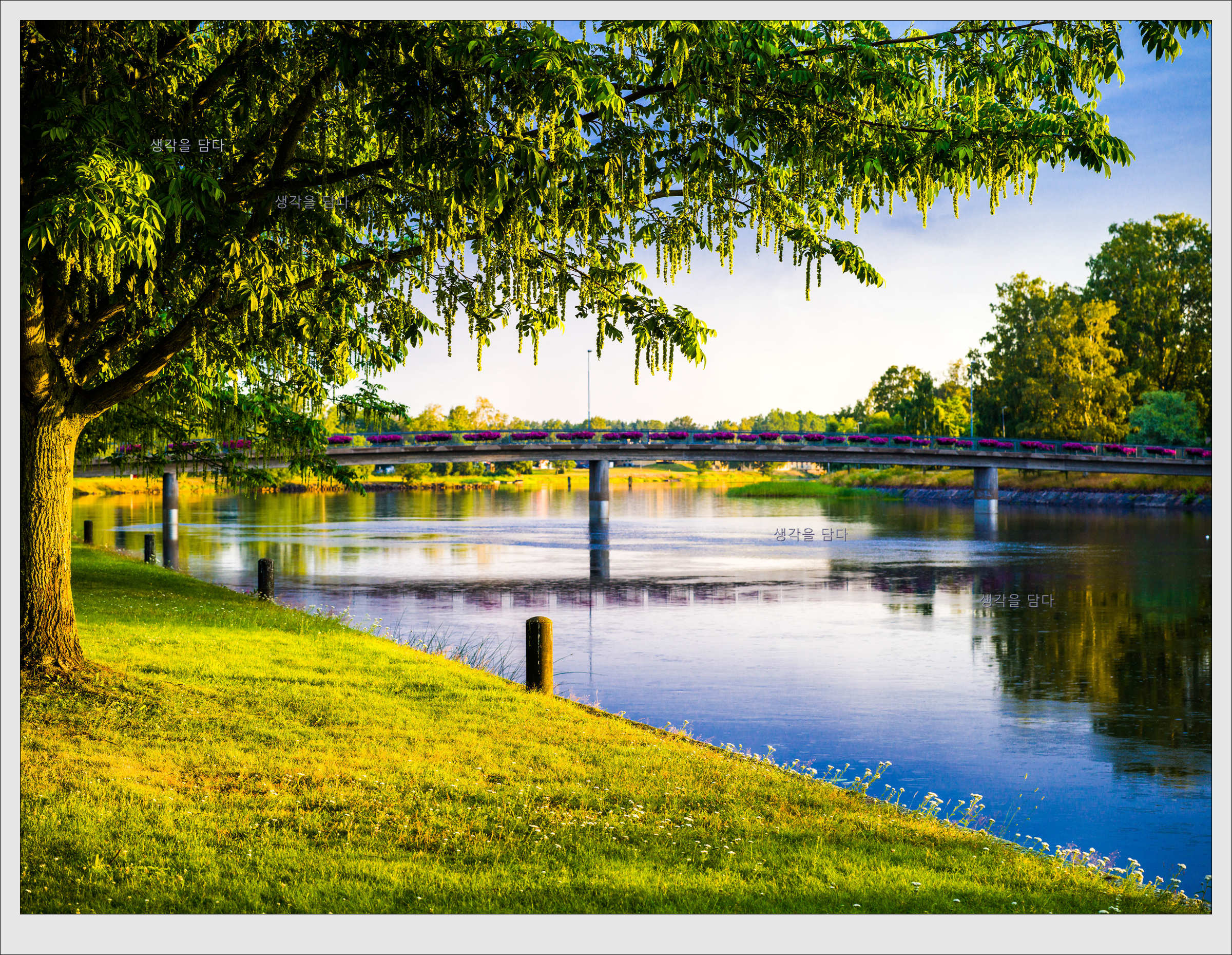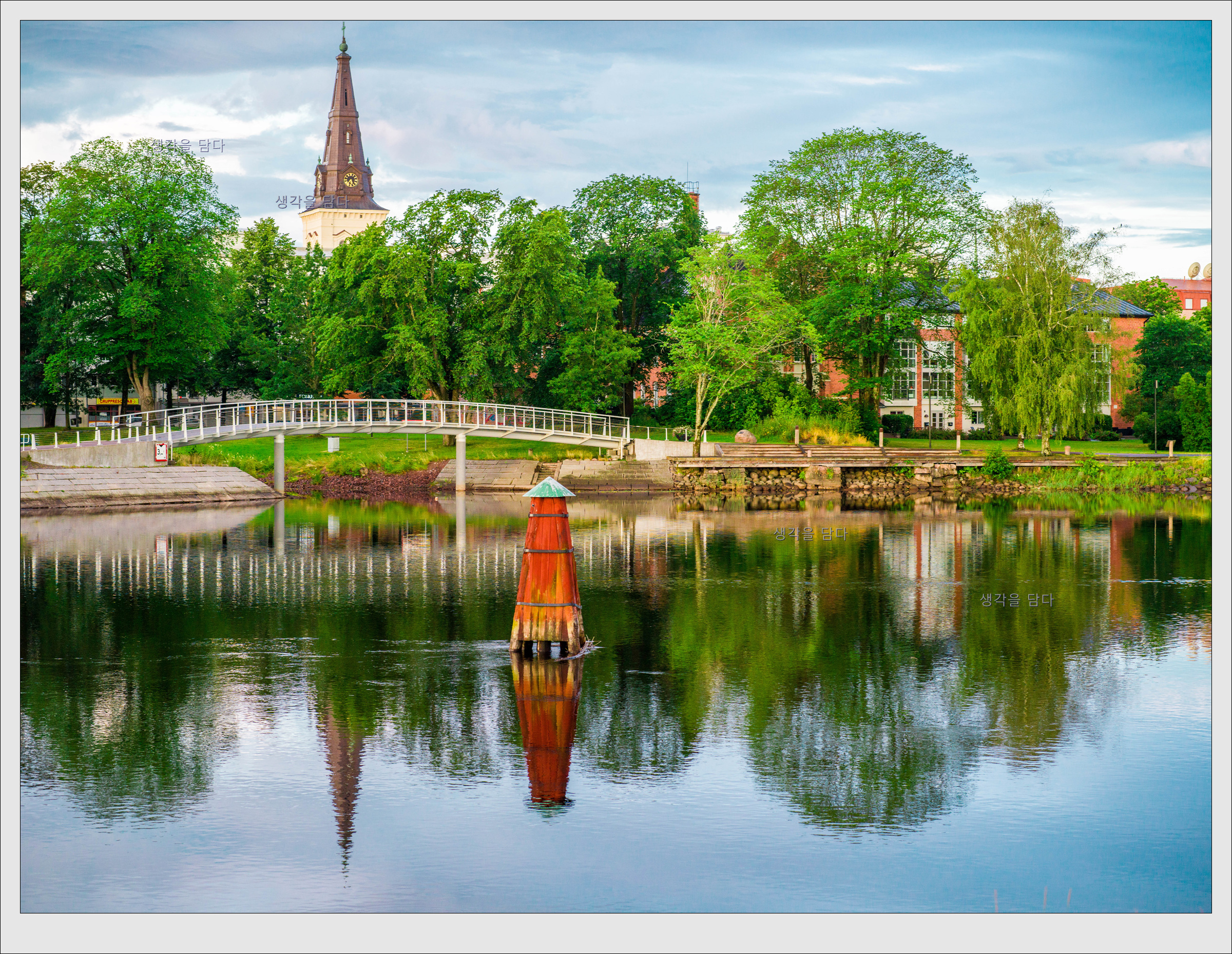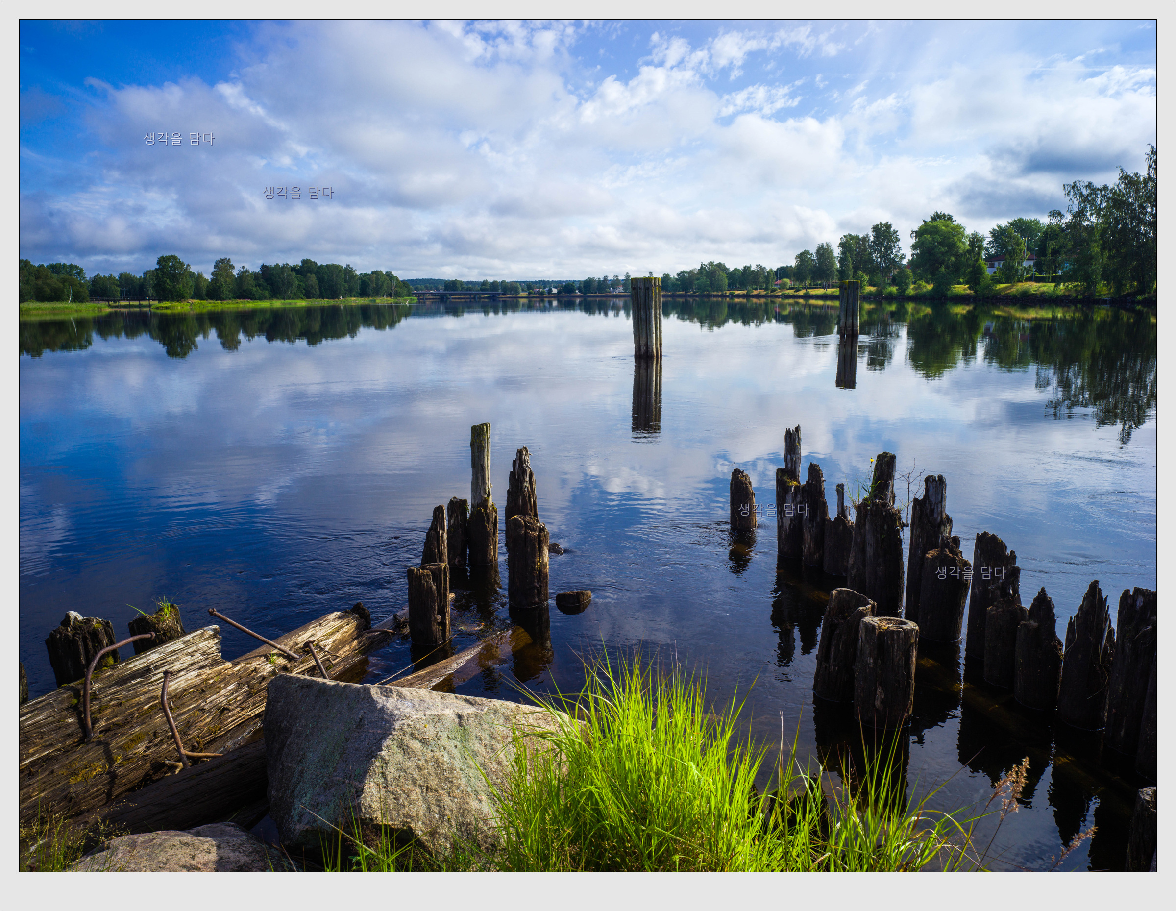 그 거울처럼 잔잔한 강에 반영된 풍경이 마치 북유럽 느낌이 물씬 나는 한 폭의 수채화 같습니다.